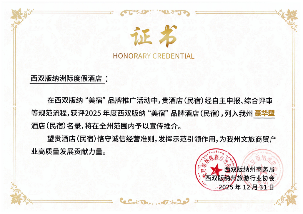 3月11日,西雙版納洲際度假酒店憑借出眾的服務(wù)品質(zhì)與行業(yè)引領(lǐng)力,榮獲由西雙版納州商務(wù)局、西雙版納州旅游行業(yè)協(xié)會(huì)聯(lián)合頒發(fā)的...