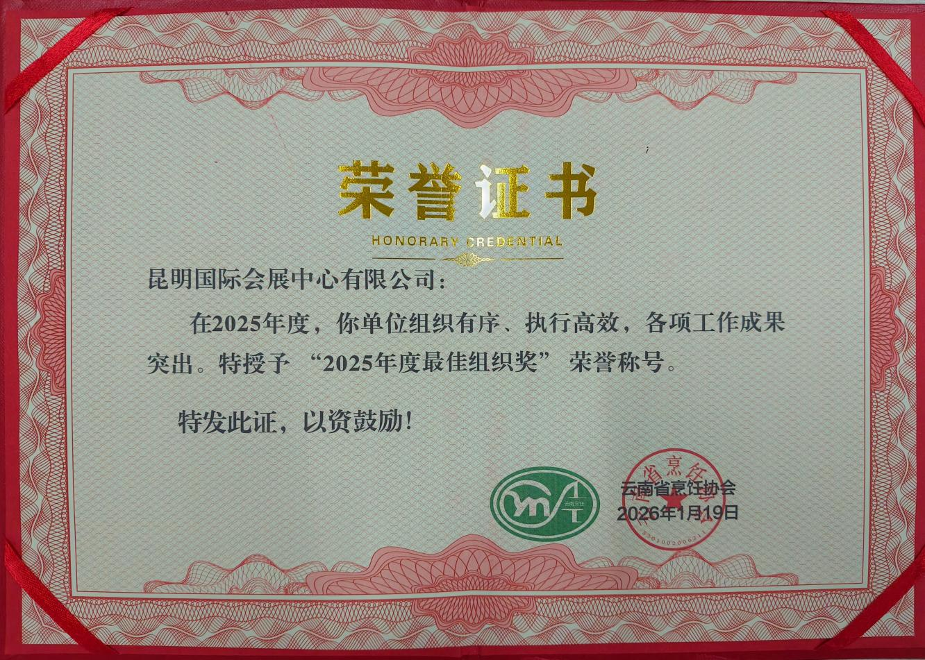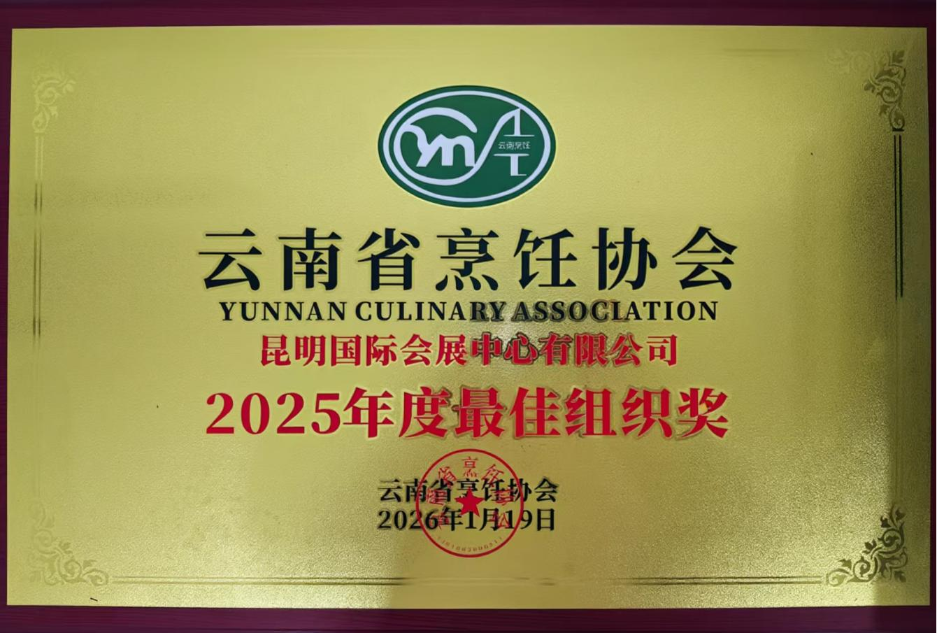 近日,昆明國展獲云南省烹飪協(xié)會授予“2025年度最佳組織獎”。這份榮譽是對公司在推動餐飲文化交流與行業(yè)協(xié)作方面所付出努力的肯定。