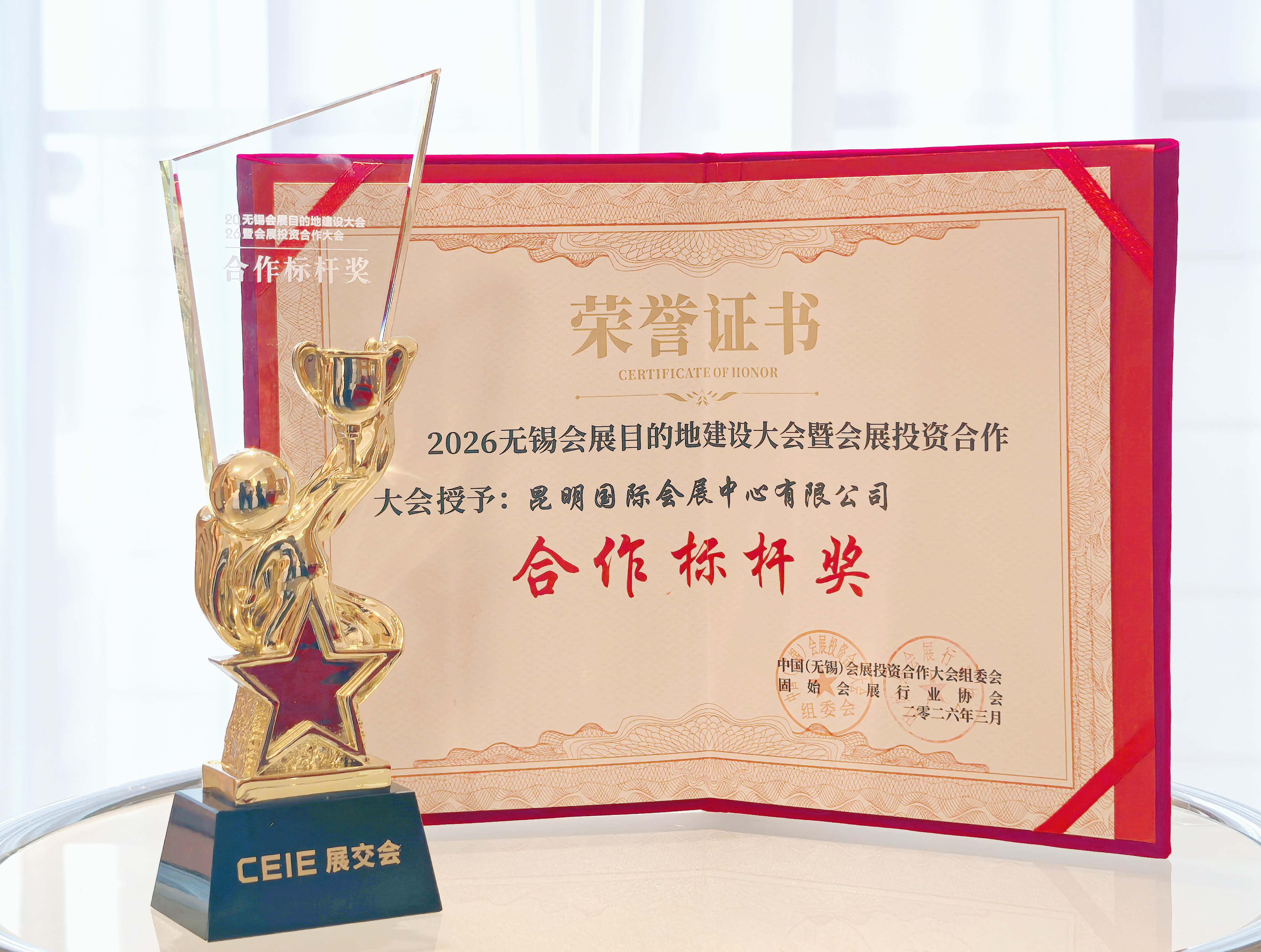 近日,在2026無(wú)錫會(huì)展目的地建設(shè)大會(huì)暨會(huì)展投資合作大會(huì)上,昆明國(guó)展憑借專業(yè)的會(huì)展運(yùn)營(yíng)能力和完善的會(huì)展服務(wù)體系,榮獲大會(huì)頒發(fā)的“合作標(biāo)桿獎(jiǎng)”。